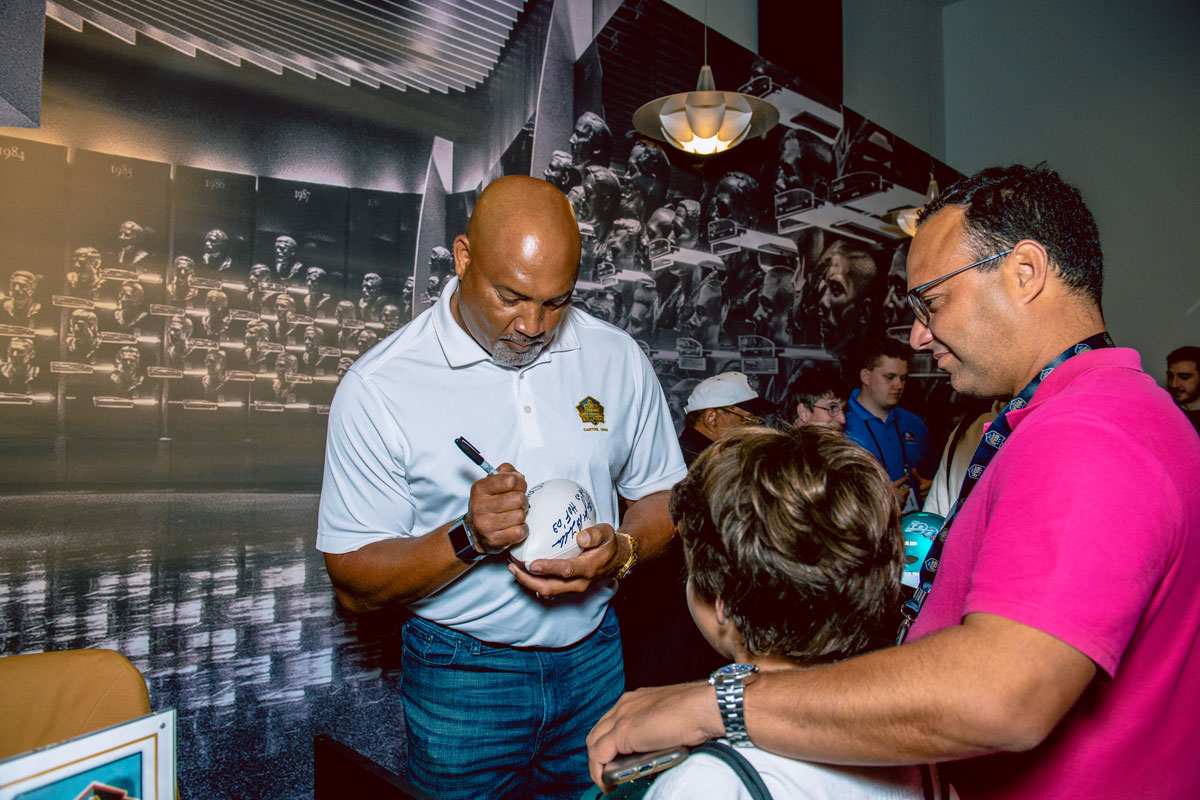 Come face to face with the legendary Hall of Famers Cris Carter, Andre Reed, Steve Hutchinson and Morten Anderson inside the Gold Jacket Club prior to the 2022 Super Bowl. Snap photos with them while taking part in all the pre-game action.