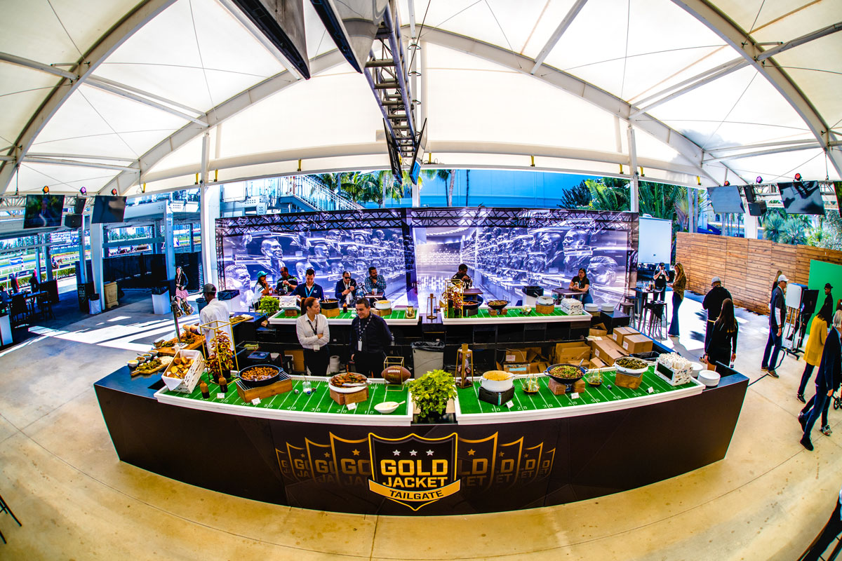Enjoy gourmet food, a premium open bar, live entertainment and more as you experience Gold Jacket Club pre-game hospitality inside Los Angeles premier entertainment destination, Hollywood Park.
